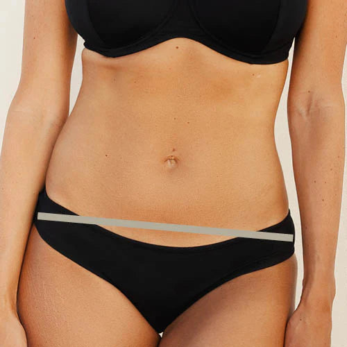 2. Wrap the measuring tape around your hips, over your bottom, make sure the tape is snug but not too tight